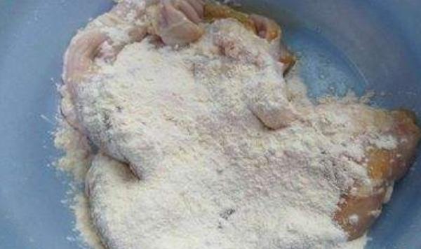 3、将面粉撒在野猪肚表面,然后用手将面粉均匀的抹开,特别是猪肚的褶皱部位,那里是产胃液的地方,一定要撒上足够的面粉。面粉的用量根据猪肚的大小来决定,只要将猪肚全部覆盖住即可。