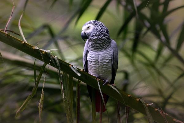 非洲灰鹦鹉属于大型鹦鹉,是典型的攀禽,对趾型足,两趾向前两趾向后,适合抓握,鸟喙强劲有力,可以食用硬壳果。尾巴短,头部圆,面部长毛,喜攀爬,不善飞翔。