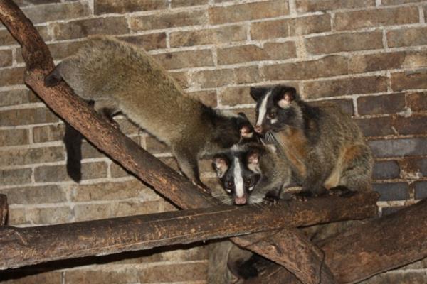 果子狸喜爱攀登,善于爬树,设置栖架可适应其攀登习性。笼舍内装有不同高度的栖架,都喜欢站到最高处。所以,栖架尽可能设得高一些,栖架上设一些分叉架,可以增加其活动兴趣,增加运动强度。