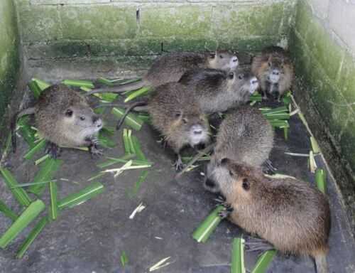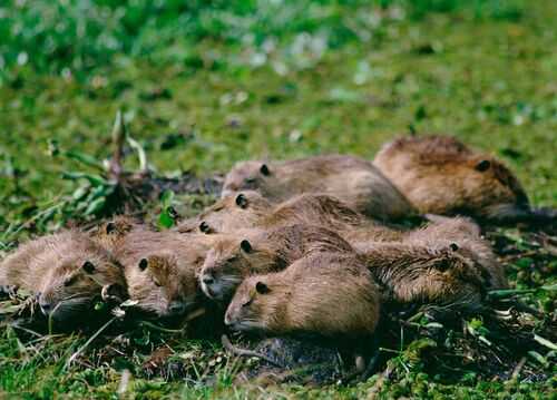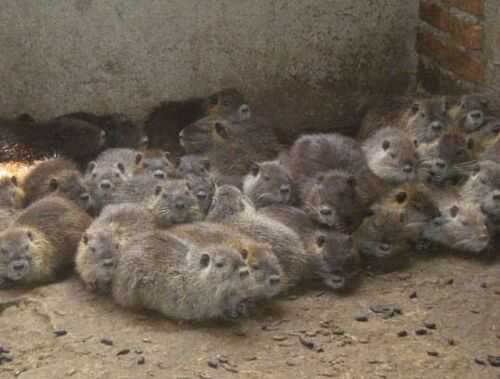 海狸鼠生长快,繁殖力强,体重可达6至12公斤,一年可生产二胎,每胎产6至14只。
