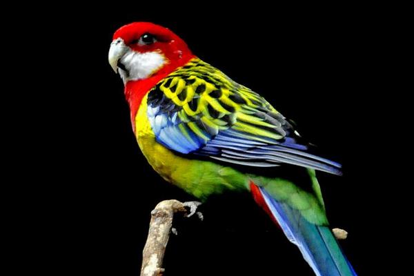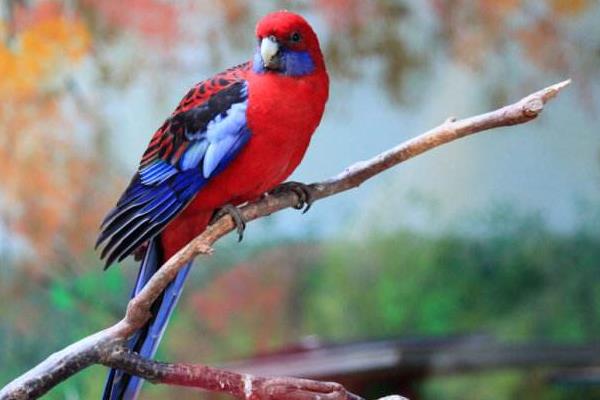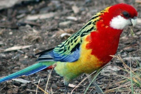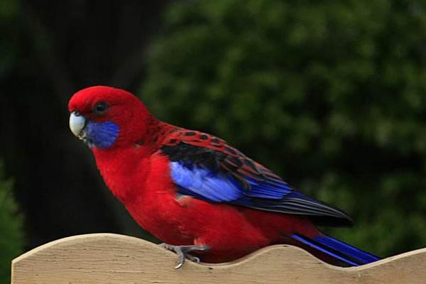 2、玫瑰鹦鹉体长30CM~33CM,身上的羽色十分鲜艳,母鸟头部与胸前的红羽比公鸟的羽色暗,面颊白色的部分呈淡灰色,头顶则有一点绿色;而公鸟的红羽为鲜红色,面颊纯白色,头顶红色无绿色参杂,雌雄之间较容易辨别,两者共有的特点就是背上具鳞片状墨斑。玫瑰鹦鹉野外数量稳定,全世界约超过50万只,有3种亚种,是发展出最多变种的玫瑰鹦鹉。