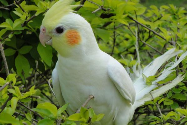 3.白色玄凤鹦鹉全身体羽为白色,头具淡黄色羽冠,嘴为象牙白色。头部、脸颊、下颌至上喉部均为淡黄色,脸颊具橘黄色圆形块斑,脚为肉粉色。