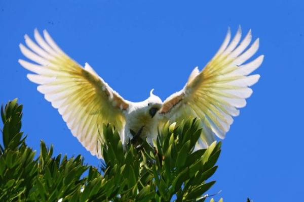 分布于澳大利亚北部、东部及东南部至昆士兰岛西部,新几内亚及北部、东部岛屿等地。葵花鹦鹉因雪白而漂亮的羽毛,金黄色的冠羽及善学人语,深受鹦鹉爱好者喜爱,一般都是为观赏而饲养的。体长约40厘米。全身白色,头顶具金黄色的冠羽。飞羽为淡黄色,在受到外界干扰时,冠羽呈扇状竖立起来,象盛开的葵花,故名葵花鹦鹉。其嘴短粗而侧扁,上嘴钩曲似钳形。跗跖短健,趾黑灰色。