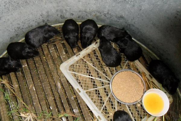 3、饲养管理是黑豚养殖的关键,重点放在防止饲料发霉、变质上。配合饲料最好随配随喂,颗粒饲料直接投喂时,应放干净水供饮,或拌饲料喂,少食多餐,每只成体日粮40克左右,每天喂两次,保持食槽清洁卫生。喂精料后,同时放入新鲜青料,青料最好当天割当天喂,每日每只成体采食青料量为250克左右,防止饲喂被农药等污染的青料。
