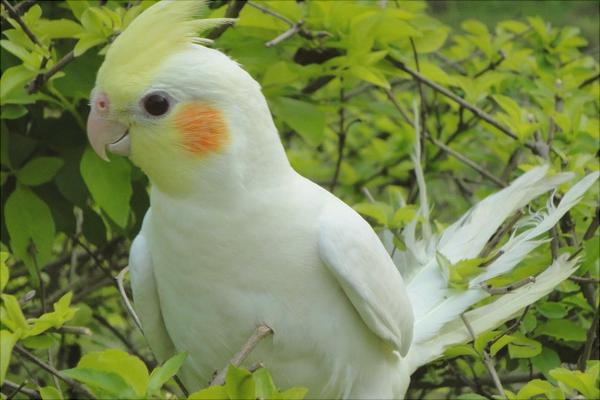3、白色玄凤鹦鹉全身体羽为白色,头具淡黄色羽冠,嘴为象牙白色。头部、脸颊、下颌至上喉部均为淡黄色,脸颊具橘黄色圆形块斑。脚为肉粉色。