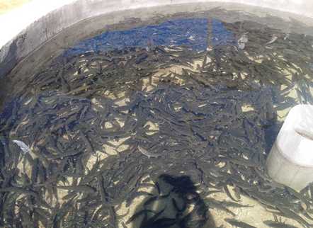 养殖场采用的是网箱养殖,每个网箱直径约42米,表面积为1350平方米,体积为1300022600立方米,每个网箱里,97.5%是海水,三文鱼仅占2.5%。三文鱼从鱼卵到成鱼的生长周期为30-40个月,为与其自然生长规律吻合,刚孵化出来的鱼苗是在淡水中养殖的, 长成幼鱼之后,才投放到海湾中的网箱养殖至收获。