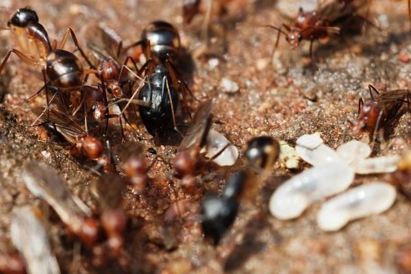 4、毒饵:毒饵即是由化学药剂与蚂蚁喜食的食物诱饵混合而成。根据蚂蚁的交哺行为,一只工蚁取食毒饵后,只要其短时间内不死亡,就可将毒饵带入蚁巢,引起其它个体死亡,死亡时间一般在七天之内,但蚂蚁蛹不进食,因此可能存活,使除蚁不彻底。