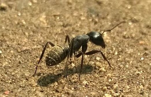 蚂蚁是人们常见的一类昆虫,很容易识别。一般体小(0.5mm-3cm),颜色有黑、黄、红、白等,体壁具有弹性,且光滑或有微毛。口器咀嚼式,上颚发达。触角膝状,柄节很长,末端2~3节膨大。全触角分4~13节。腹部呈结状。有的有翅,有的无翅。前足的距大,梳状,为净角器(清理触角用)。为多态型的社会昆虫。