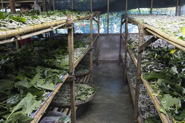 8、夏秋高温,病原繁殖快,要注意按需采叶、及时运叶,合理贮叶。贮桑池每个龄期要消毒一次,不要喂过夜桑叶。