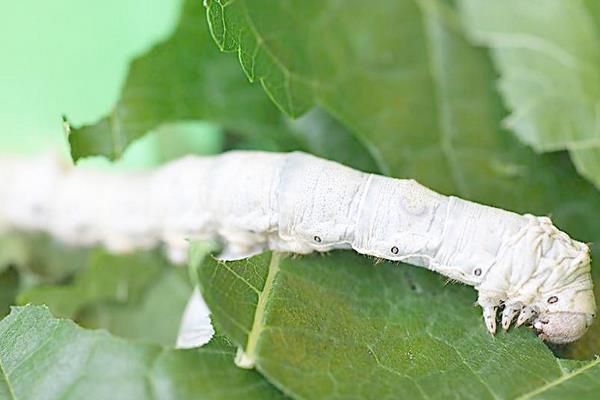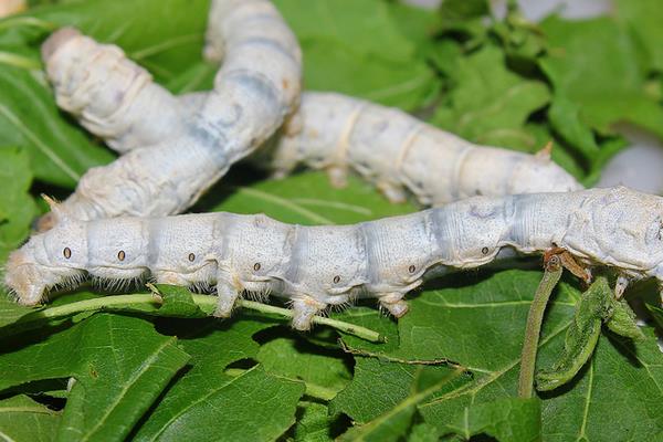 蚕是变态类昆虫,最常见的是桑蚕,又称家蚕,以桑叶为食料的吐丝结茧的经济昆虫之一。桑蚕起源于中国,其发育温度是7~40℃,饲育适温为20~30℃。蚕宝宝以桑叶为生,不断吃桑叶后身体便成白色,一段时间后它便开始脱皮。脱皮时约有一天的时间,如睡眠般的不吃也不动,这叫休眠。经过一次脱皮后,就是二龄幼虫.它脱一次皮就算增加一岁,幼虫共要脱皮四次,成为五龄幼虫,再吃桑叶8天成为熟蚕,开始吐丝结茧。
