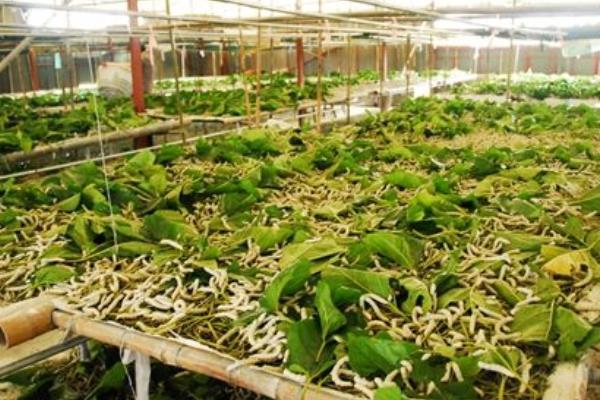 桑蚕茧养殖分为春蚕、伏蚕、秋蚕,秋蚕又分中秋蚕和晚秋蚕,春蚕质量最好,秋蚕次之。饲养品种有农桑、大中华等。桑蚕茧的生长周期受限于气温,每年春季4月20日左右开始养殖春蚕,26-27天为一个生长周期,5月20日左右开始夏伐,桑树重新长出新叶后,6月25日左右开始养殖伏蚕,24-25天为一个生长周期,因中秋蚕与伏蚕间隔时间短,怕消毒不好影响生长和质量,一般不养中秋蚕,晚秋蚕一般在9月5日左右开始养殖,10月上旬结束。伏蚕一季由于受气温、环境、收购价格等因素影响,有的养殖户选择养春蚕、秋蚕两季,也有选择养殖三季蚕的。从调查中了解到:一棵桑树苗0.4元,一亩地植1440棵,78年为一周期,平均每年投入的桑树为87.27元/亩。