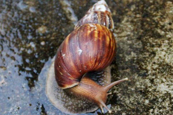 3、玛瑙蜗牛:玛瑙蜗牛是世界上最大的蜗牛,别称非洲大蜗牛、露螺、东风螺、菜螺、花螺等,原产于东部非洲的马拉加西岛,后来传遍了整个热带地区,由于玛瑙蜗牛肉味鲜美,倍受欧美老板的欢迎,致使非洲大蜗牛成为今日世界上的主食蜗牛,这种蜗牛是较适应在我国自然条件下生长的品种。