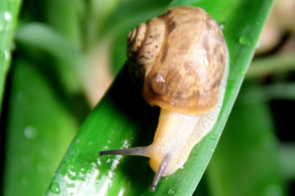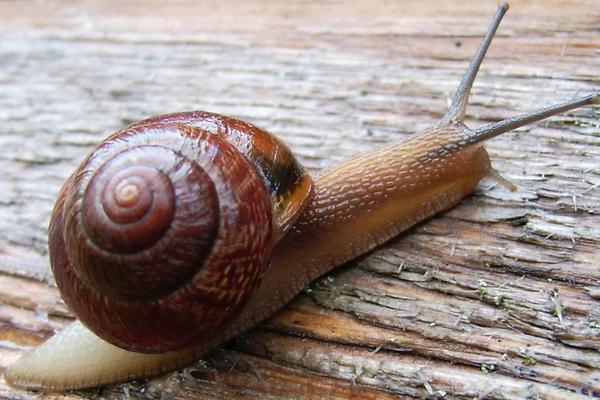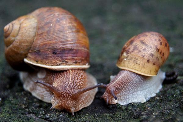 2、庭园蜗牛:别称散大蜗牛、蜗娄牛、驼包蜒蚰等,原产欧洲中西部的法国、英国等地区,通常栖身于园林或灌木丛中,故称为之庭园蜗牛。成蜗牛体形略小,直径约3厘米左右,螺壳质薄,呈黄褐色,并具有4条紫褐色带,壳表面布满许多黄褐色的小斑点,因品种退化,个体小,养殖经济效益较差。