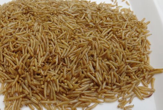 据工作人员介绍,三到四天就能收获一批成品蛆。烘干的蝇蛆是优质的蛋白饲料,主要销售给甲鱼等水产养殖场,每吨市场价格稳定在1.8万元左右。蛹壳和成蝇也是,烘干后每吨价格也在万元以上。 现在我们每天能得到近1吨左右烘干的蝇蛆。