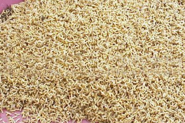 普遍采用的方法是使用麦麸加猪血生产蝇蛆,一般5公斤麦麸加入1头猪的鲜血,我们当地每头猪的猪血为1元钱,则总的原料成本为8元钱,可以生产鲜蛆5-6公斤,则每公斤鲜蛆的生产成本为1.4-1.6元,加上其他的开支,总成本为两元左右。所以,采用麦麸生产蝇蛆的成本远高于使用粪料。对于缺少粪料来源的地方,若从事黄鳝养殖,可以临时采用麦麸养殖蝇蛆,以供急时所需,平时不用养殖而采用配合饲料投喂。采用玉米粉也可养殖蝇蛆,但产量比使用麦麸还低,一般不提倡采用。