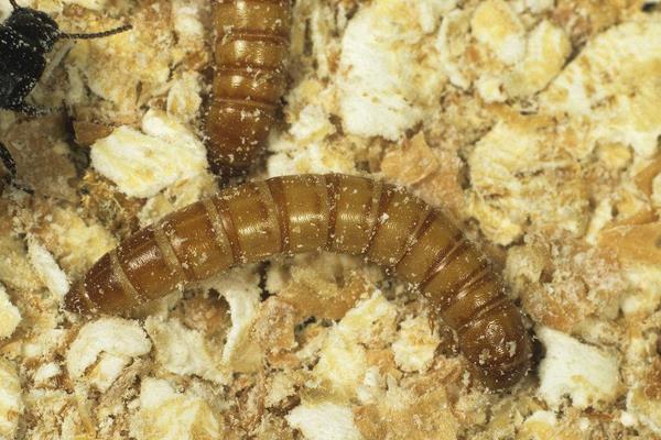 黄粉虫又叫面包虫,在昆虫分类学上隶属于鞘翅目,拟步行虫科,粉甲虫属(拟步行虫属)。 原产北美洲,50 年代从苏联引进我国饲养,黄粉虫干品含脂肪30%,含蛋白质高达50%以上,此外还含有磷、钾、铁、钠、铝等常量元素和多种微量元素。因干燥的黄粉虫幼虫含蛋白质40%左右、蛹含57%、成虫含60%(据《中药科技报》报道)。被誉为蛋白质饲料宝库。