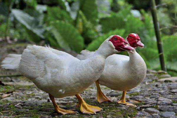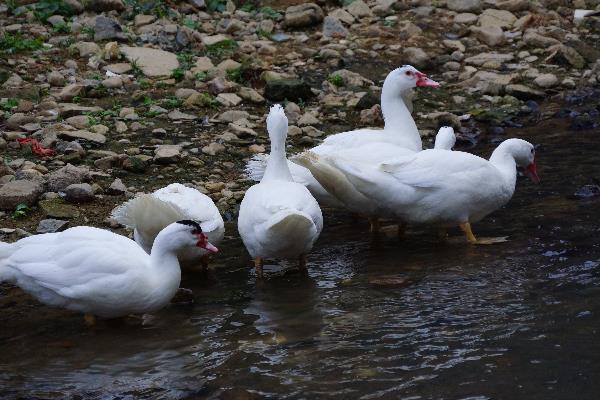 5、惠安、泉州、南安的番鸭顶部有一撮黑毛,全身为白色,而福州市郊的大种白番鸭体型比较大。