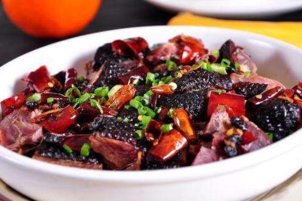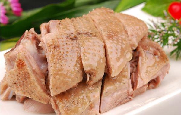 材料:鸭1750克,盐100克,八角30克,桂花酱10克,花椒5克,大葱20克,姜5克,黄酒10克。