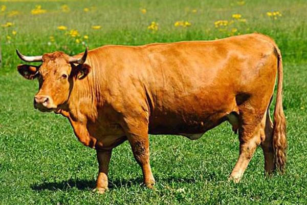 2、在我国供宰杀食用的肉牛品种较多、生产效益好,主要有夏洛莱牛、西门塔尔牛、利木赞牛、三元杂交牛、鲁西黄牛等优良品种,是一类以生产牛肉为主的牛,特点是增重快、饲料利用率高、体躯丰满、产肉性能好、肉质口感好,肉牛不仅为人们提供肉用品,还为人们提供其它副食品。