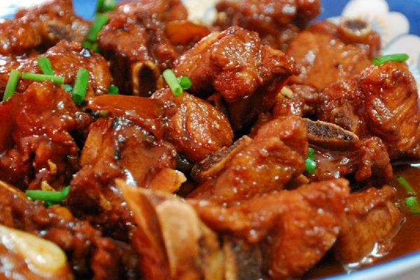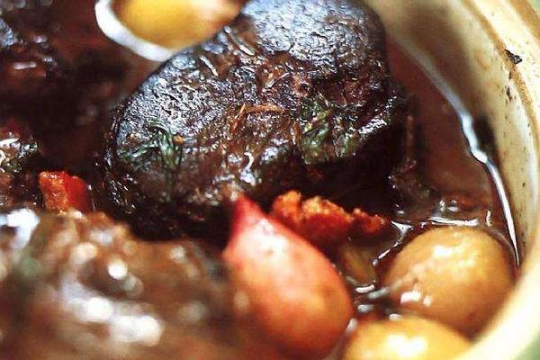 原料:南瓜、鸭块、姜、蒜、老抽、红酒。