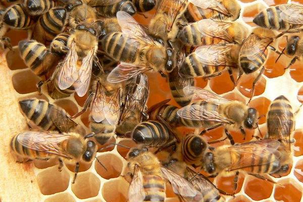 2、蜂群采蜜,当满载而归的采集蜂回巢时,一进门就像接力赛跑中传递接力棒似的把蜜囊中的花蜜口对口地吐交给内勤蜂,或者暂时缷在空巢房内,然后又马上出去进行第二次采。