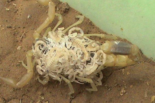 1、孕蝎进入产期就要为幼蝎备足适口的小饲料虫。