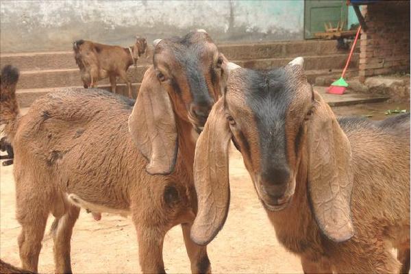 1.外形体征。努比亚山羊毛色以黄褐色多见;被毛细短、富有光泽;头较小,额部和鼻梁隆起呈明显的三角形,两耳宽大。有角或无角,有须或无须,角呈棱形或扁形螺旋状向后至达颈部。头颈相连处肌肉丰满呈圆形,颈较长,胸部深广,肋骨拱圆,背宽而直,尻宽而长,四肢细长,骨骼坚实,体躯身长,腹大而下垂,乳房丰满而有弹性,乳头大而整齐,稍偏两侧,是我国著名的南方肉用山羊品种。