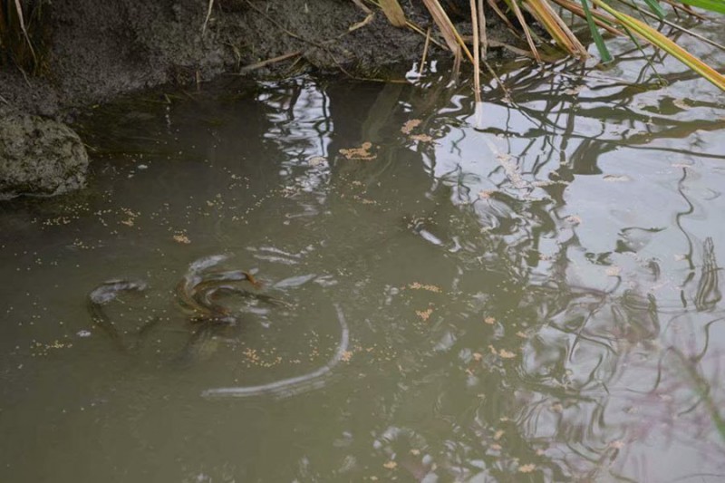 定时巡田,看到泥鳅浮头、不下沉要立即换水,检查网丝是否损坏要及时修补更换。尤其是雨天一定要检查排水和田埂是否牢固。
