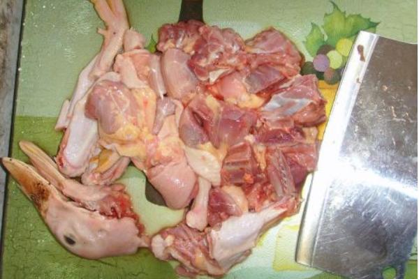 2、把鸭屁股剪掉,把鸭脖子剁下。