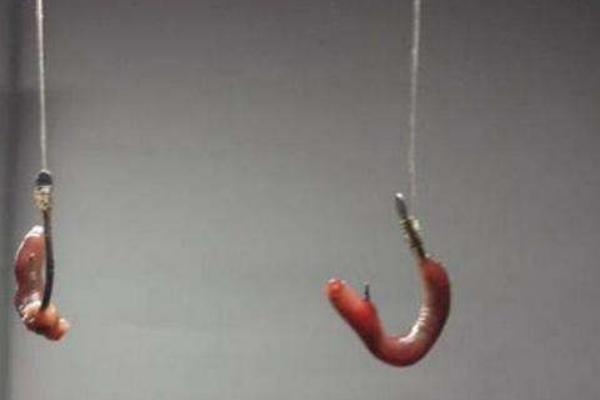1、装整条蚯蚓。有两种装法:①从头部刺入,裹住钩体,多余部分挂在钩尖之外;②在距头部约10毫米处刺入至穿,再间隔10毫米刺穿,蚓尾部分挂于钩上。