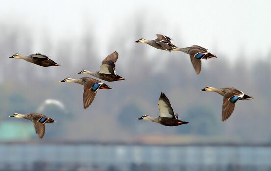 狭义的野鸭系指绿头鸭,别名为大绿头、大红腿鸭、大麻鸭等。最常见的大型野鸭、也是除番鸭以外的所有家鸭的祖先。