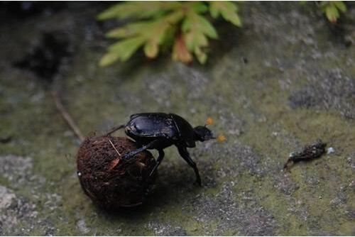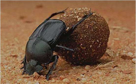 蜣螂,也有很多人叫它屎虼螂、推丸、裹粪牛、滚粪牛等,属鞘翅目金龟子科粪金龟亚科。世界上约有 2300 种蜣螂,分布在南极洲以外的任何一块大陆。蜣螂能利用月光偏振现象进行定位,以帮助取食。有一定的趋光性。钻进牛粪里的虫类,可以将粪便滚动成球状,推行向前。主要以动物粪便为食,有自然界清道夫的称号,又名莫多昇。