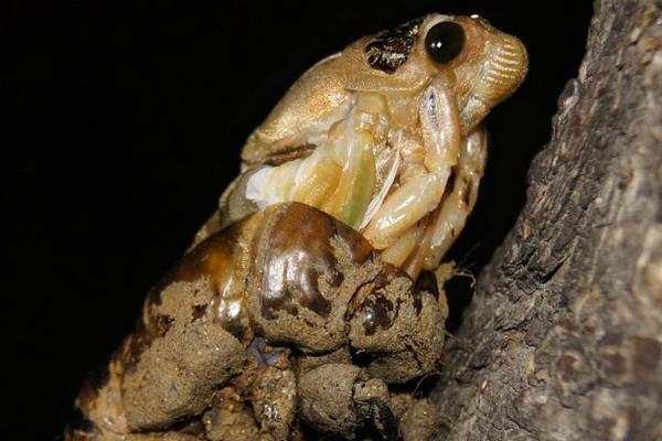 6、采收,如有树木,多在一米处用透明胶带缠一圈,以保蝉虫不会爬高蜕变。蝉虫子播种之日起1518个月即成成虫。