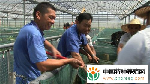 王忠华:由于大棚的保温性能,黄鳝的饲养周期也长了。以前的话从4、5月份才开始给黄鳝投饵料,现在我们从3月份就开始喂了。这样大棚延长了黄鳝吃食的时间。