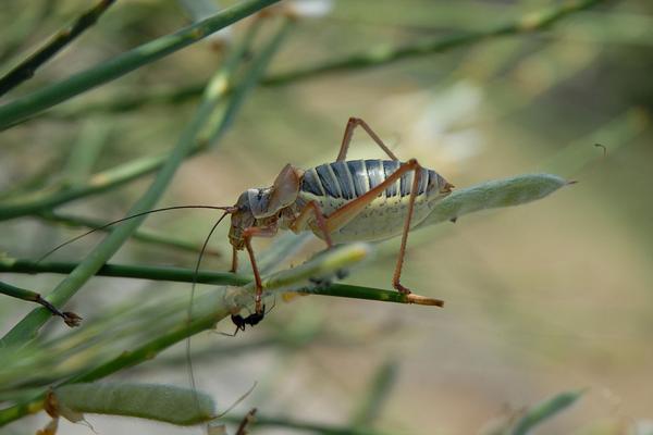蝗虫如果太饿的时候大蝗虫会吃小蝗虫,晚上,早晨和傍晚后都不会咬的,主要就是中午的这个时候,如果在这个时候您让他又饥又渴的话,那样他就会大吃小,所以这几个小时最好是给喂一次青草就什么都解决了。