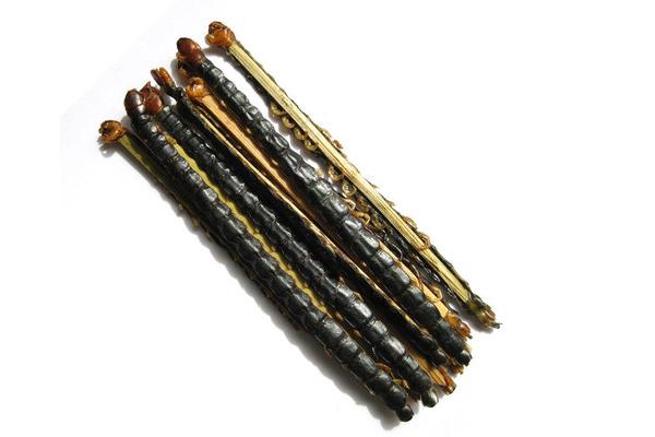 蜈蚣加工方法比较简单,但是操作上一定要认真,使成品合乎商品要求。加工时用开水把蜈蚣烫死,捞出后挤出粪便,再按下列方法固定、干燥: