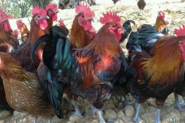 公鸡的外貌特征:头大小适中、单冠直立,有56个冠尖,肉垂及耳鲜红,虹彩橙黄,喙黄、颈部长短适中,头颈、背部的羽毛金黄色,胸羽、腹羽、尾羽及主翼羽黑色,肩羽、鞍羽枣红色,脚矮而黄,体质结实,结构匀称。