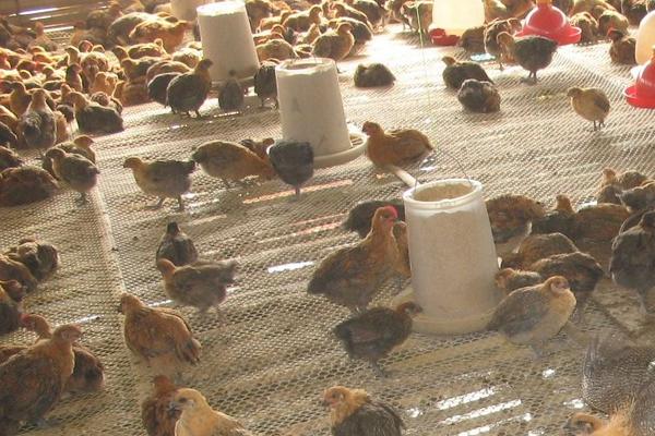 主翼羽和小翼羽的内侧为黑色,外侧为麻斑,由前自舌变淡而麻点逐渐消失。跖部短细而黄,脚有四趾,以黄色居多。出壳雏鸡背羽两侧各有一条约4毫米宽的白包绒毛带,保持到第一次换羽后即消失,这是清远麻鸡的雏鸡独特标志。