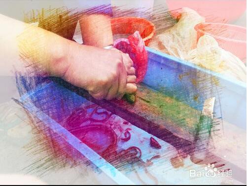 最好将木板搁在盆上,实在没有合适的盆,搁在水槽上也行。木板也找不到就用切菜板代替。抓起蟮鱼,将鱼头往木板上一摔。再用锥子,刺穿鱼头,侧身固定在木板上。