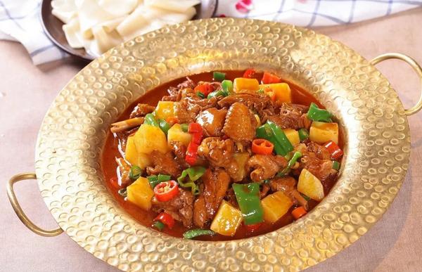3、加鸡块翻炒出水分,加料酒翻炒几分钟出香味,加水焖炒一会,直到鸡块8成熟,加山药、盐,再翻炒几分钟左右。