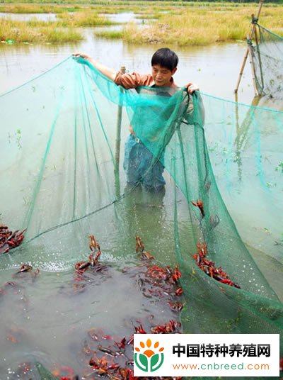 小龙虾具有加速度生长规律,生产中适时将大规格的小龙虾起捕上市,是小龙虾高产高效的重要措施,做到常年捕捞,捕大留小的方法,降低池塘水体的载鱼量,始终保持较合理的饲养密度,从而促进虾、蟹的快速、同步生长。小龙虾的起捕应从5月底便开始起捕上市,河蟹为秋季集中起捕上市。每亩放养体质健壮、无病无伤、规格80-120只/kg的扣蟹500只左右。因有几年养殖,每年龙虾都留塘,无需再放小龙虾苗种。
