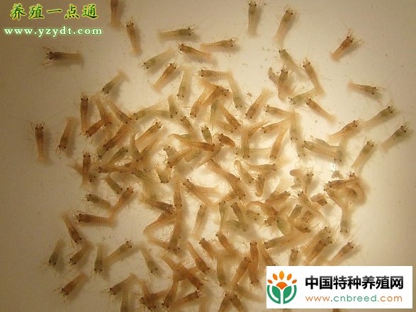 通过投喂饵料、调控水质,对孵化出的幼虾进行培育。