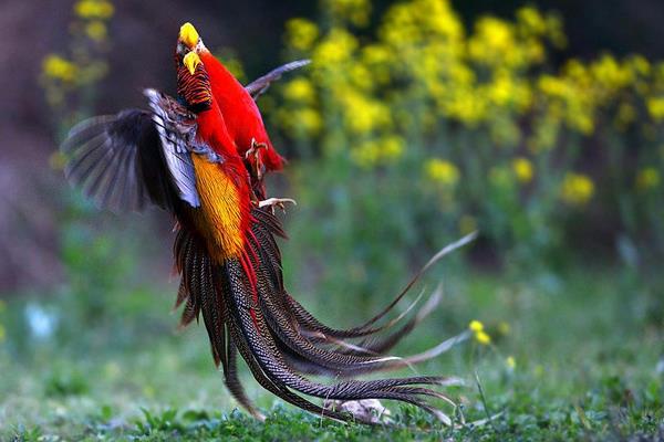 杂交锦鸡,白腹锦鸡与红腹锦鸡杂交所得的一种锦鸡,具有两种锦鸡与众不同的色彩。