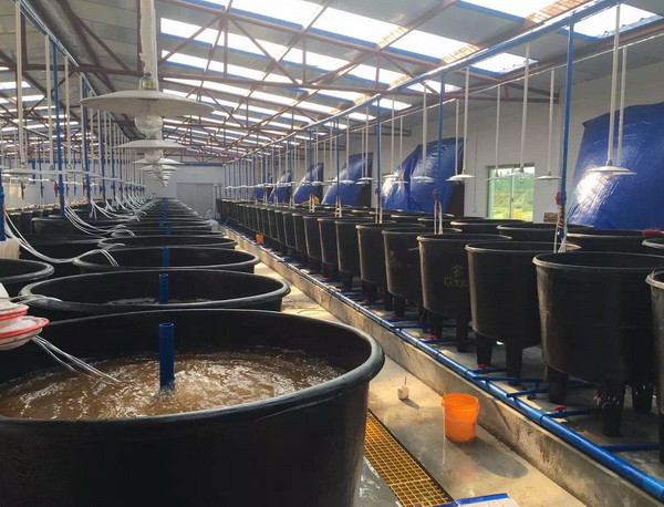 工厂化循环水养殖模式利用机械过滤设备、生物处理设备、恒温设备、增氧设备、水质检测设备等组成系统。将鱼虾的粪便第一时间从水体中分离,再通过生化培育技术,有导向性地培养水产益生菌,使水中的氨氮、亚硝酸盐等有害物质转化成无毒的物质。再加上目前的水产物联网技术,可以实现远程监控、全自动化运行。