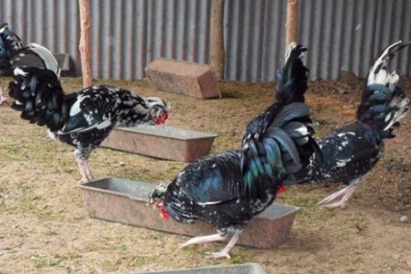 2.营养需要与饲料配合。贵妇鸡在不同生长阶段,也需要不同营养水平。其所需的营养标准还缺乏详细资料。可选用家鸡颗粒饲料喂养,用小鸡料喂养一月龄内的小鸡。为提高贵妇鸡育雏生长速度,建议在每包家鸡小鸡饲料(40公斤)中加入4%进口鱼粉、6%饲料酵母或羽毛粉以及适量鱼肝油、b杂水等。用中鸡料或大鸡料喂养2月龄至5月龄鸡。产蛋鸡可选用家鸡蛋鸡料或种用鸡全价饲料,为获得高产和提高种蛋质量,建议在应用家鸡蛋鸡或种用鸡料中,按每包(40公斤)料中混入2%进口鱼粉、5%饲料酵母。