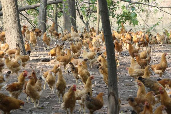 3、必须在宽敞的养殖场草地上,让草鸡主动找食。空气是对鸡肉质量影响最大的因素,在压抑环境下长大的鸡不仅口感不好,对人体还会产生不良影响。