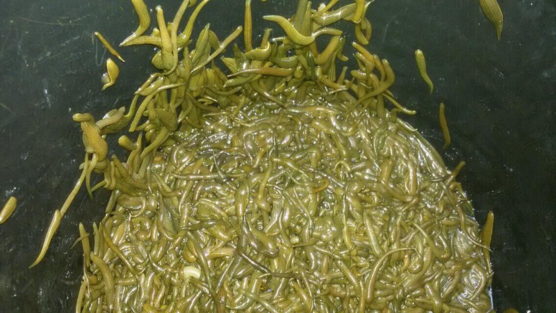 做好各项准备工作后,投放在泡沫箱泥土中孵化了20天的,经清理干净后即将破茧而出的20斤水蛭卵茧。在20口幼蛭网箱中按每口网箱400个左右一斤卵茧放养,然后在每口网箱中放入2个泡沫盒盖;10日放入寸片泥鳅2-3尾和夏花草鱼4-5尾。