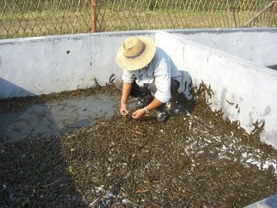 1、种蛭池的建造外围建造和一般水泥池一样,只是面积大些,水泥池宽5米,长不限,把池分成2:1:2的宽,在池内再做一个低于外围池身40公分的平台,平台上放上经过消毒杀菌杀虫后的腐殖土30公分左右。供种蛭休息产卵。池中间的1米灌上与里水泥平台深度一致的水供水蛭取食,