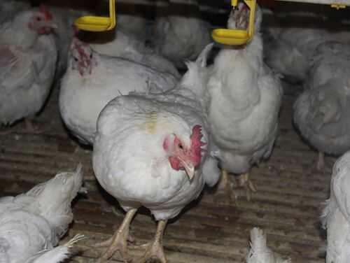 白羽肉鸡,实际上是属于快大白羽肉鸡中的某些品系。是从白洛克(或白温多得)中选育出来的。该鸡种除具有快大肉鸡的主要性状外,其特点是其羽毛的白色为隐性性状。该鸡全身羽毛均为白色,体型呈丰满的元宝形;单冠,冠叶较小,冠、脸、肉垂与耳叶均为鲜红色;皮肤与胫部为黄色。眼睛虹膜为褐(黑)色,这一点是区别隐性白羽和白化变异的重要特征。