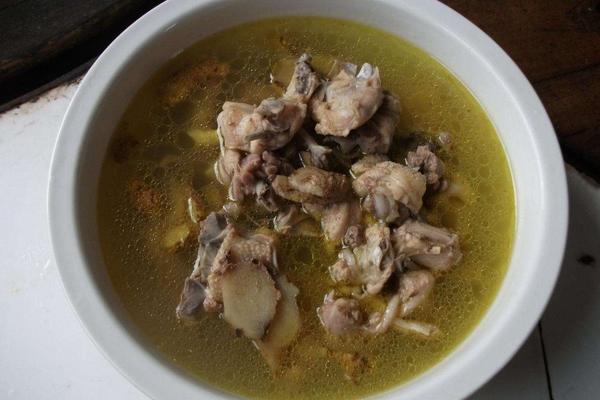 3、将生姜切成片状,加入到砂锅里面,然后加入一些花椒,小火慢炖。差不多四个小时的样子,就能炖好食用了。在食用之前,在里面适量的加入一些盐即可。
